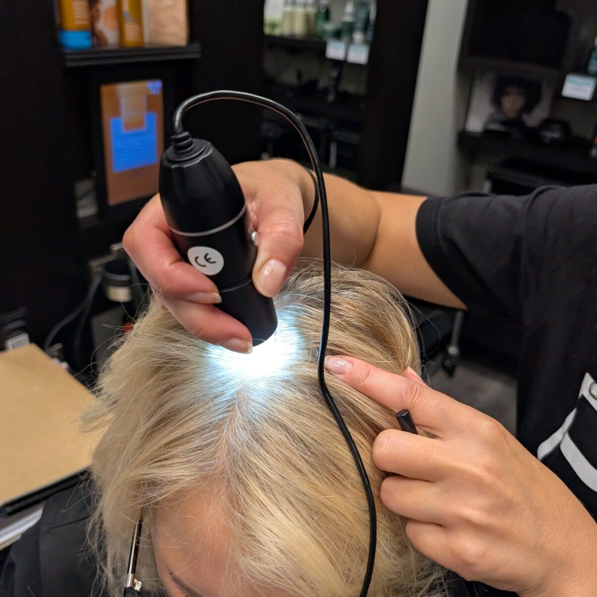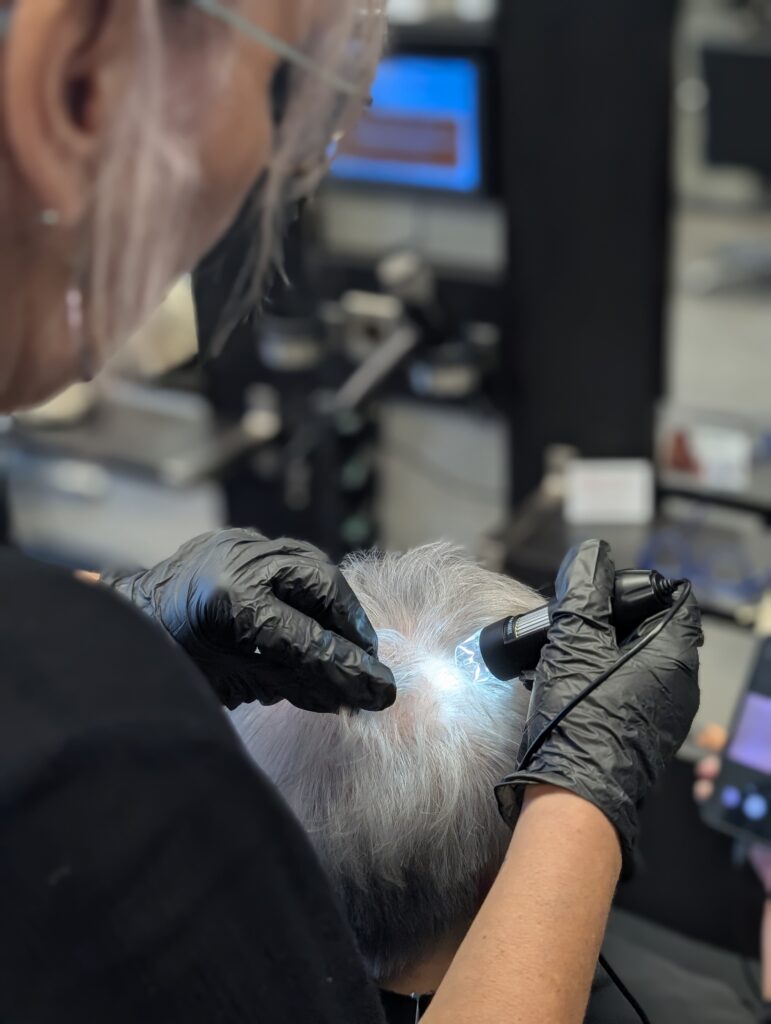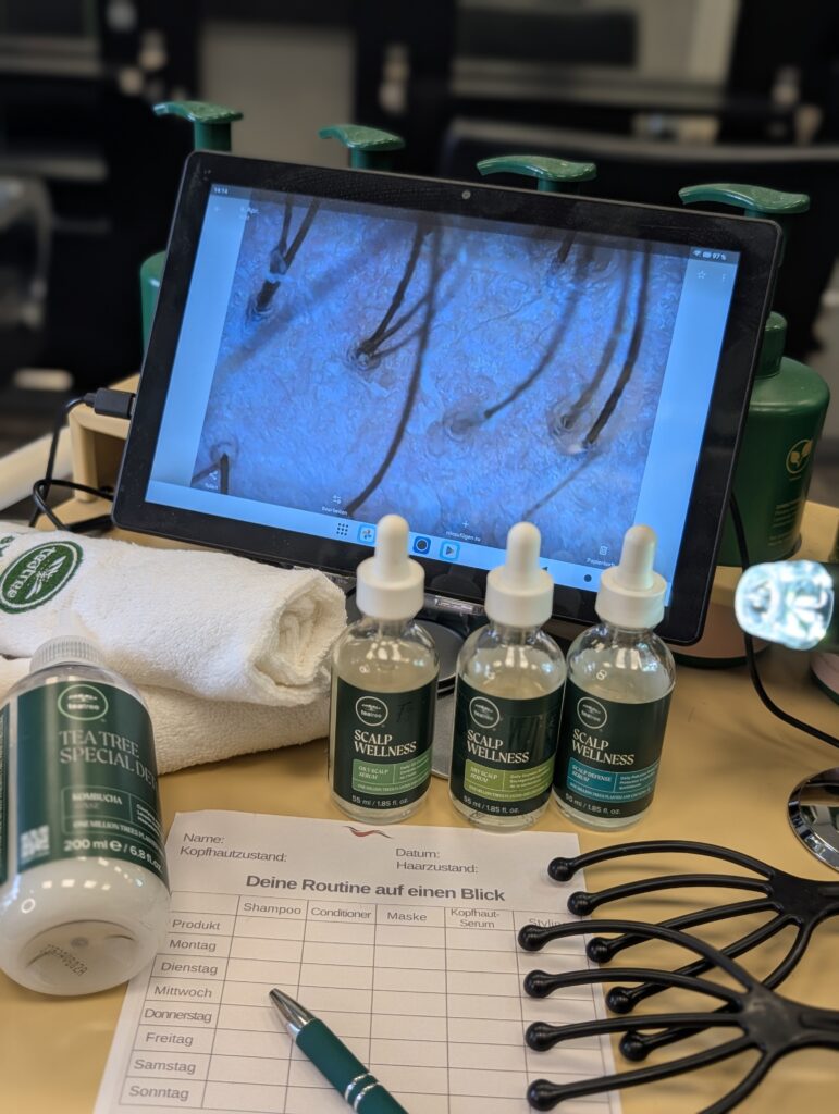 Wir schauen genauer hin. Mit Kopfhautkamera, individuellen Pflegeplänen und ausgewählten Detox- und Pflegebehandlungen unterstützen wir dich auf dem Weg zu gesunder Kopfhaut und schönem Haar.